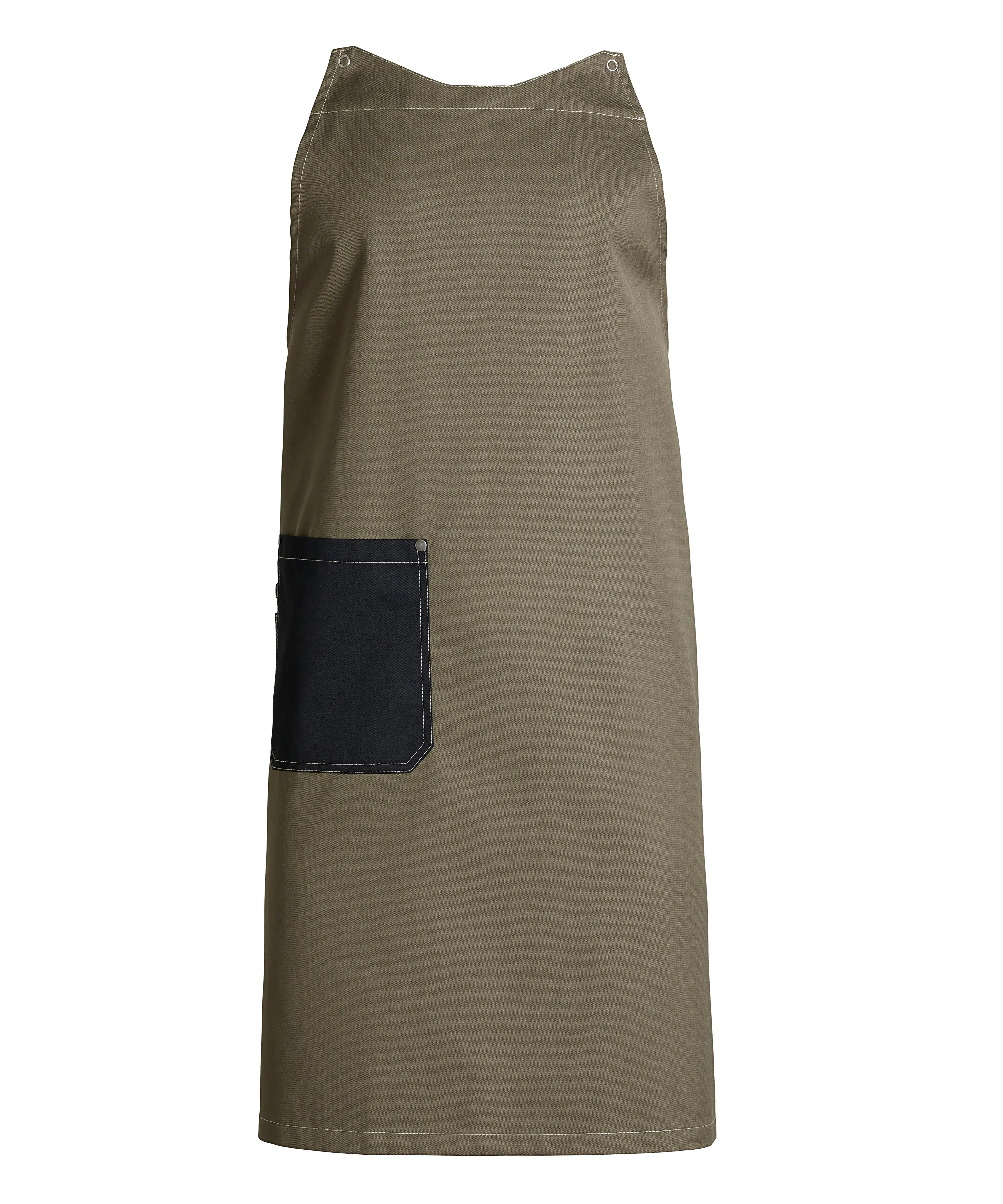 - Collar strap with press button for a bib apron