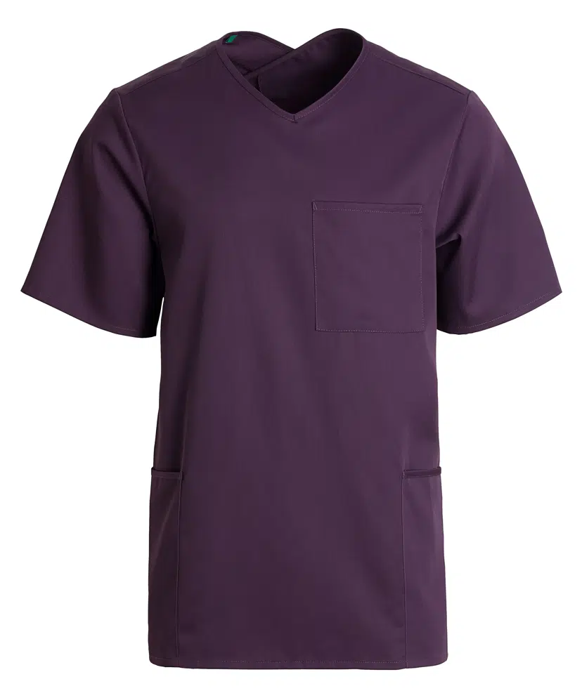 - Unisex V-neck for extra coverage, easy to put on due to cut in the "cross neck"
