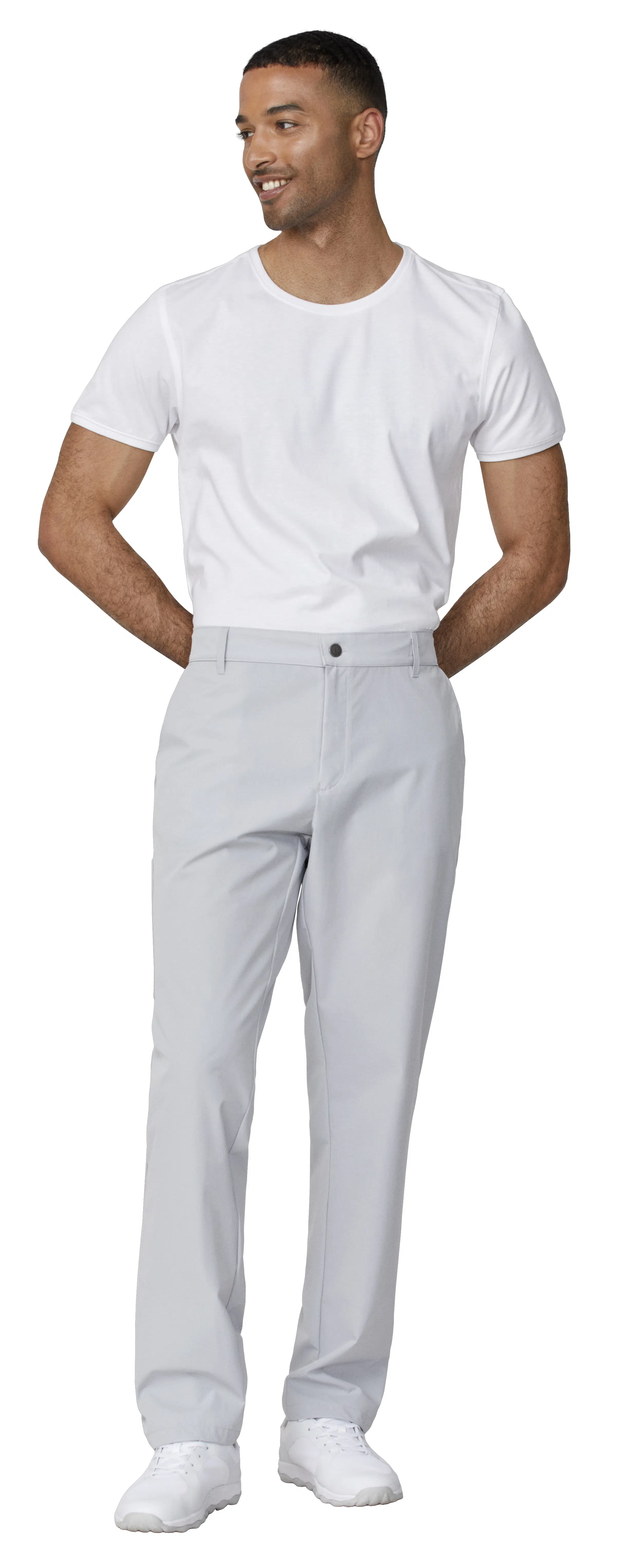 • Adjustable waist, belt loops and elasticated back