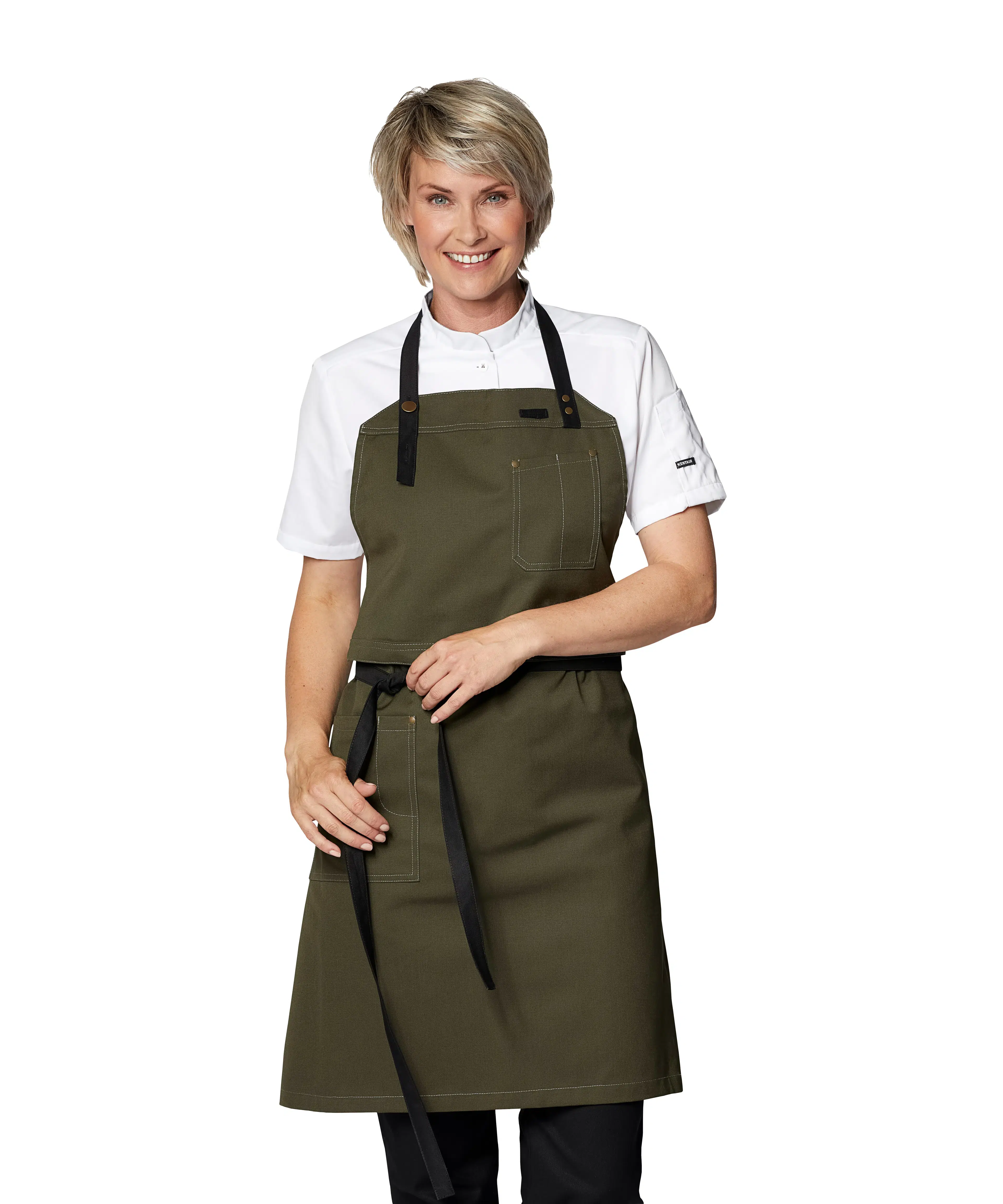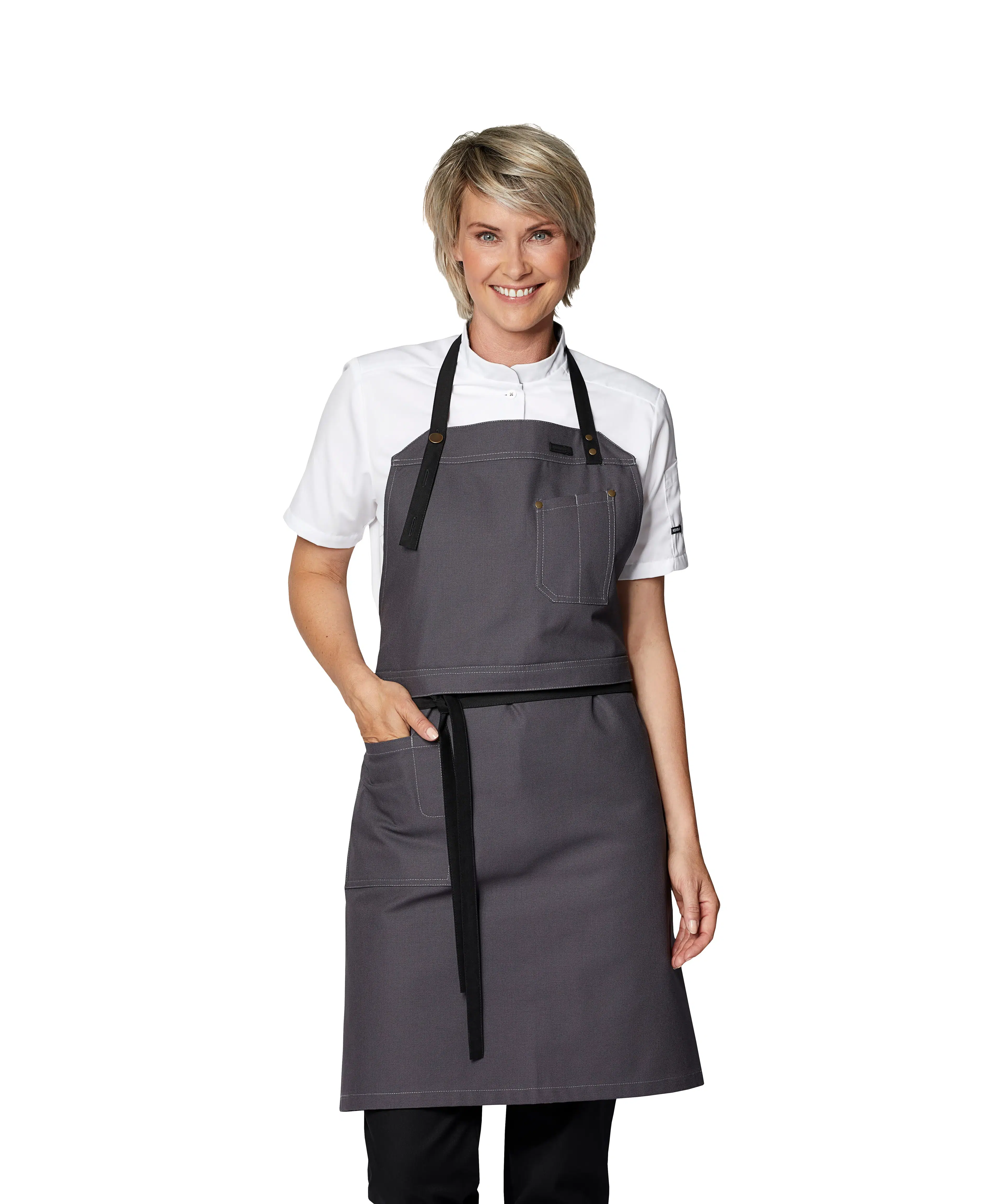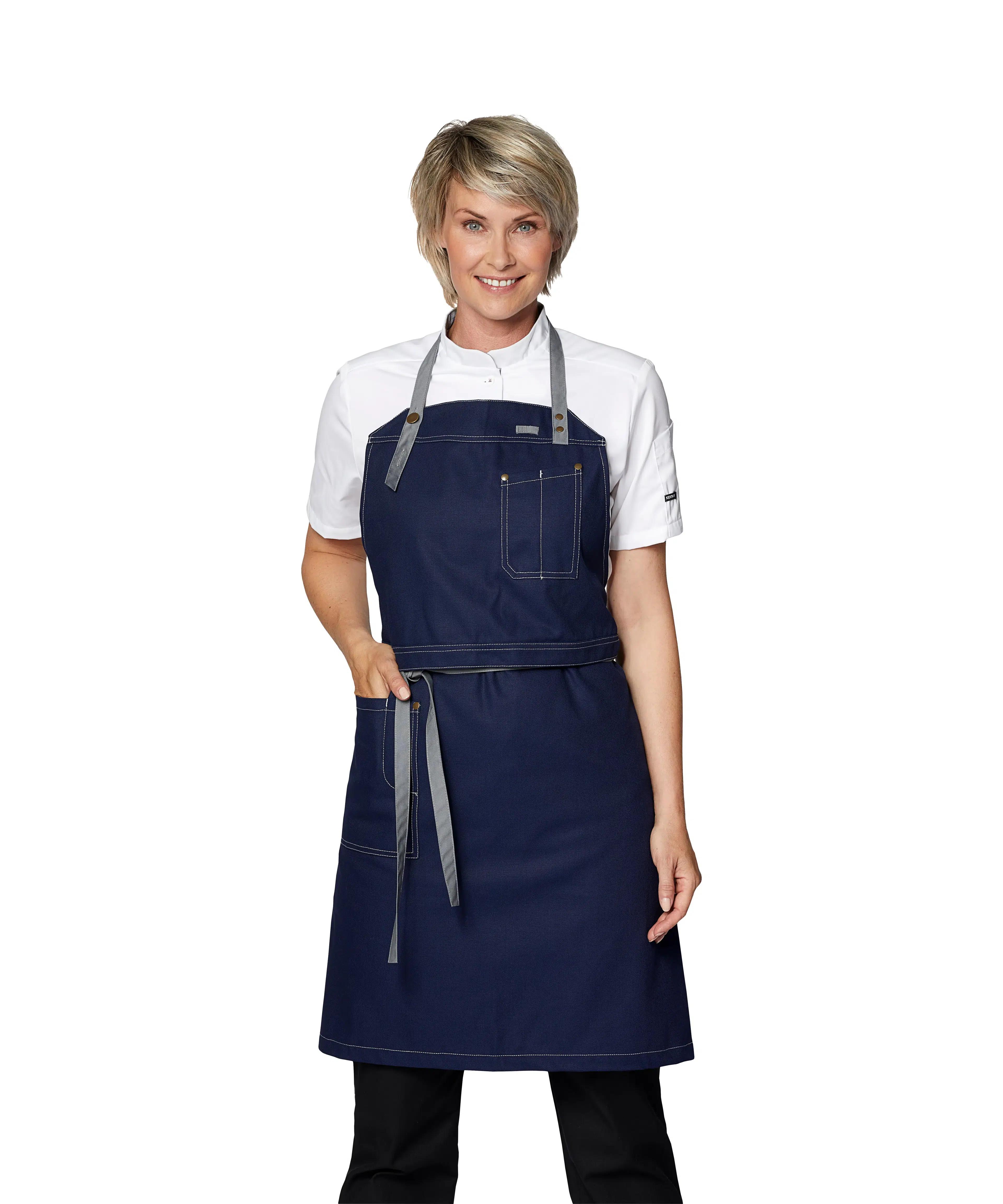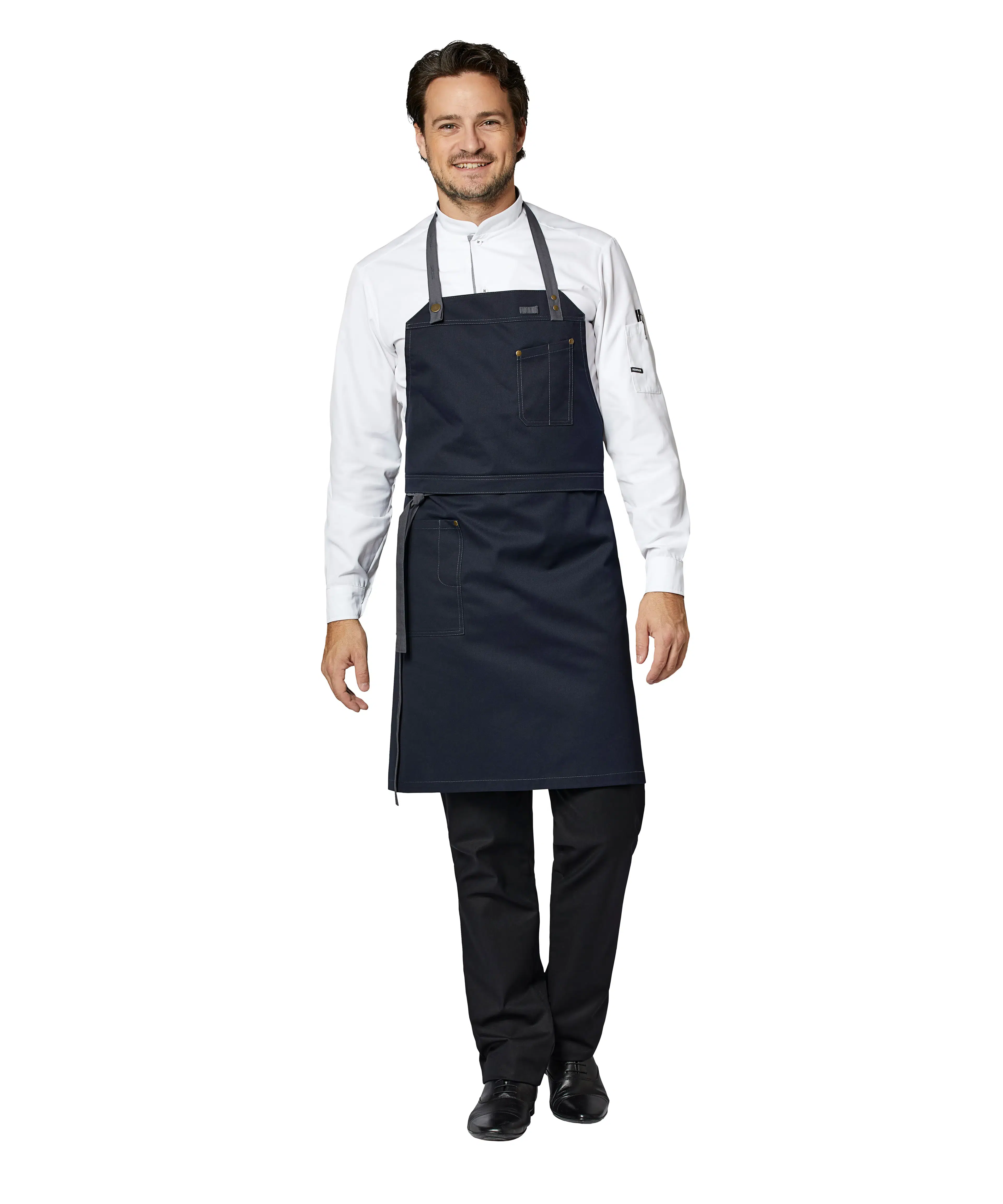 - Bib can be folded back so the apron can be used as a waiter's apron