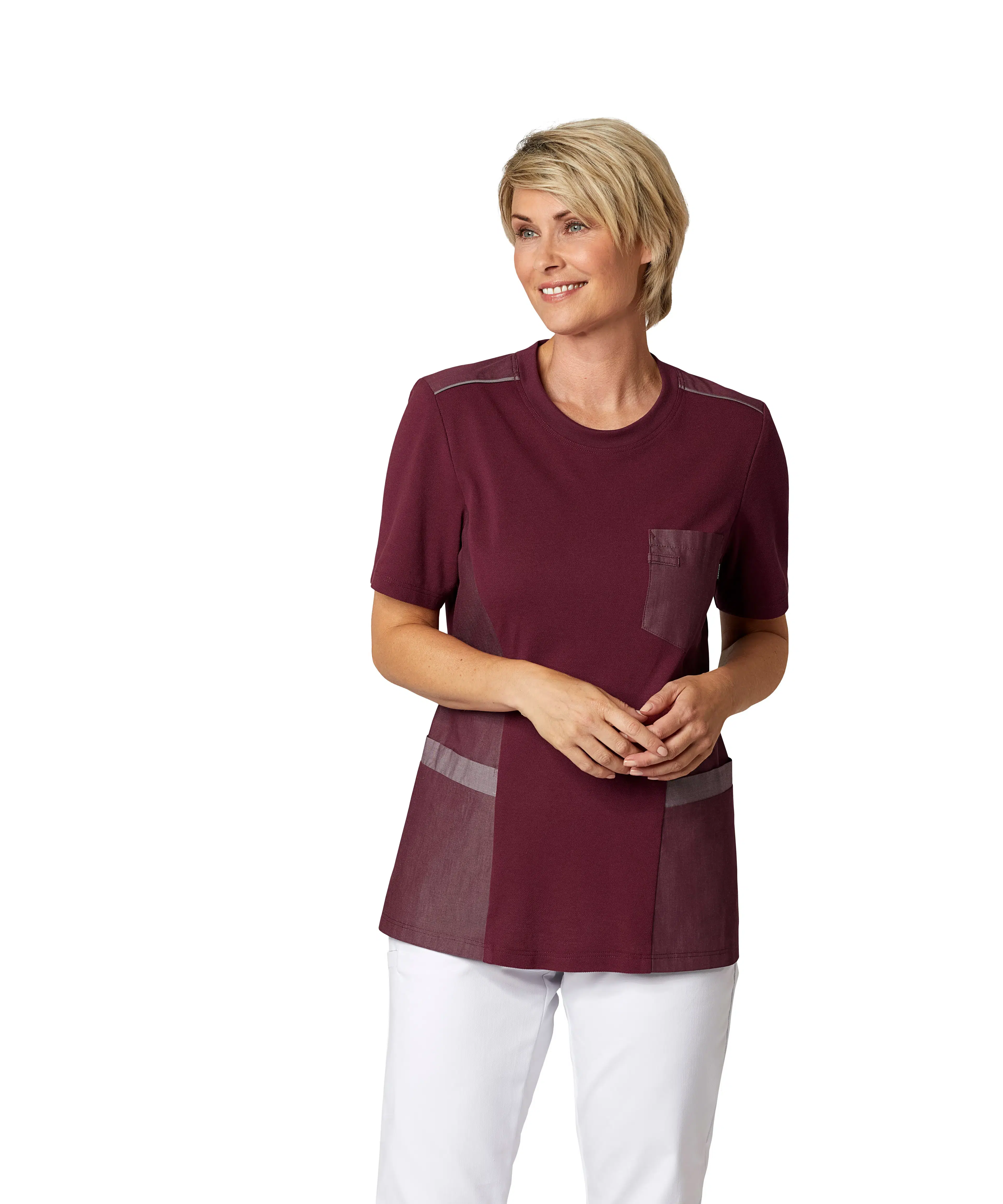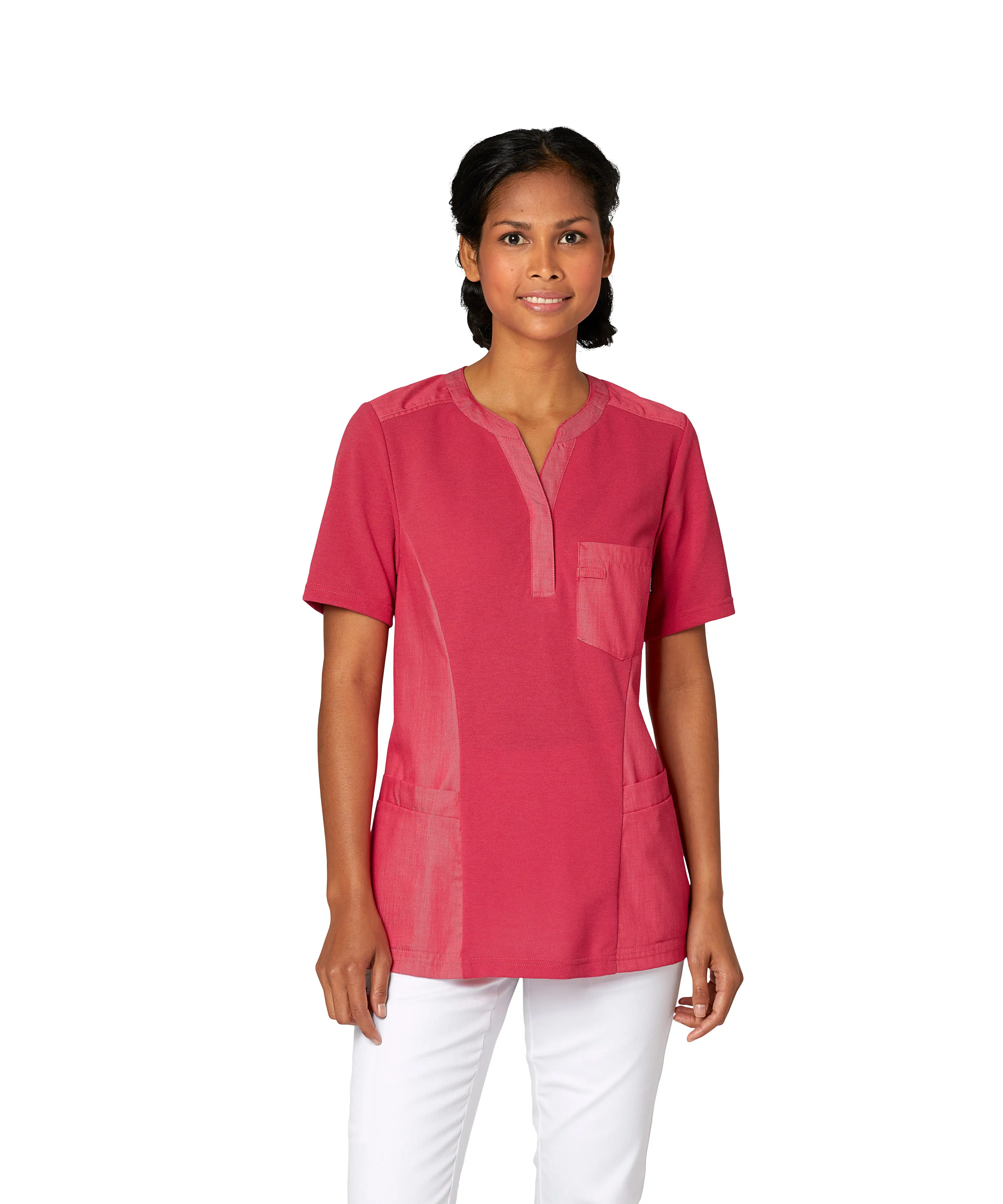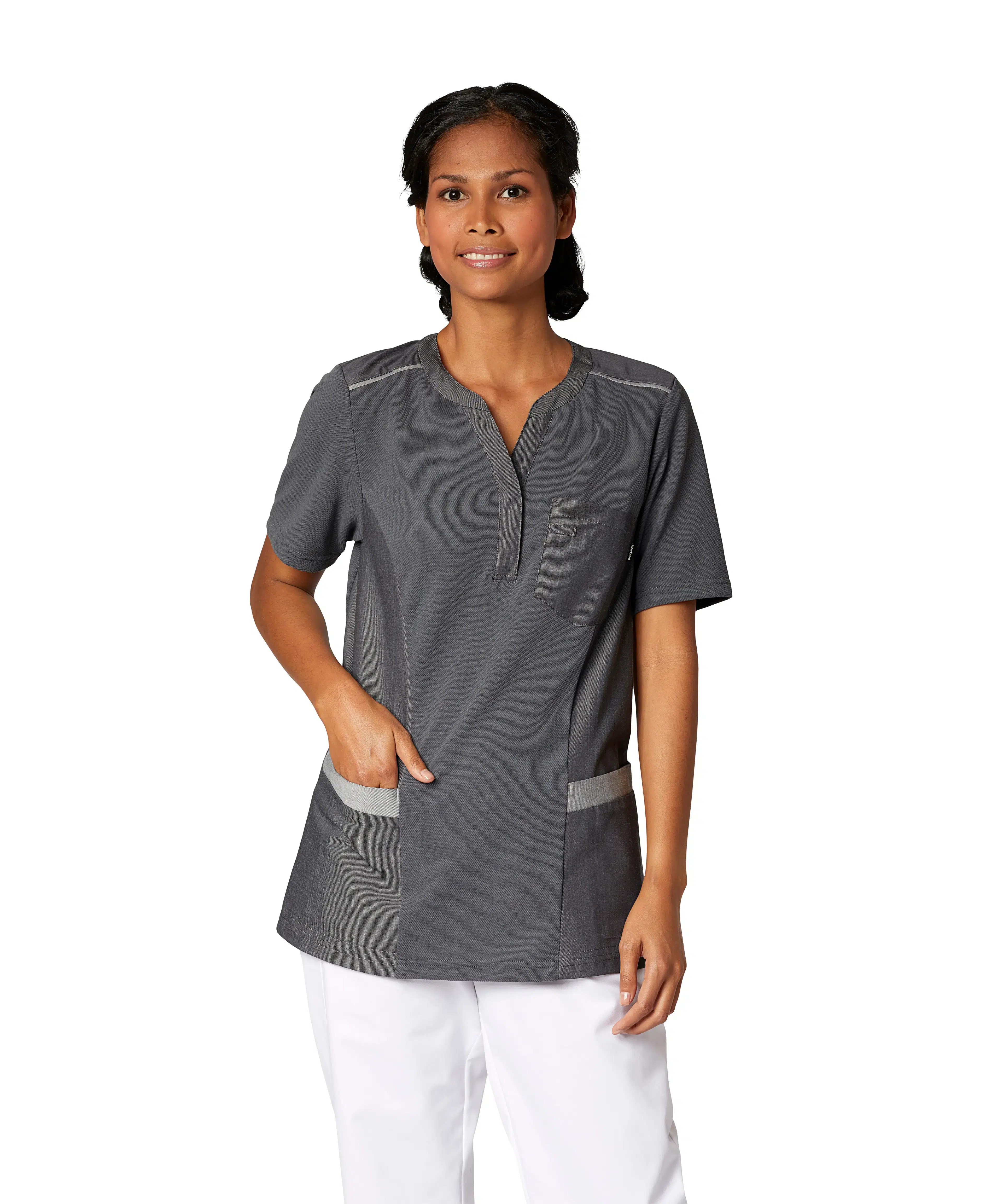 Pique Line is designed for professionals who want the comfort of a T-shirt with the functionality of a tunic. The soft knit fabric allows for full freedom of movement, while woven panels provide durability where it matters. With smart features like spacious pockets and key loops, Pique Line is comfortable to wear, easy to work in, and equipped with details that make your workday easier.