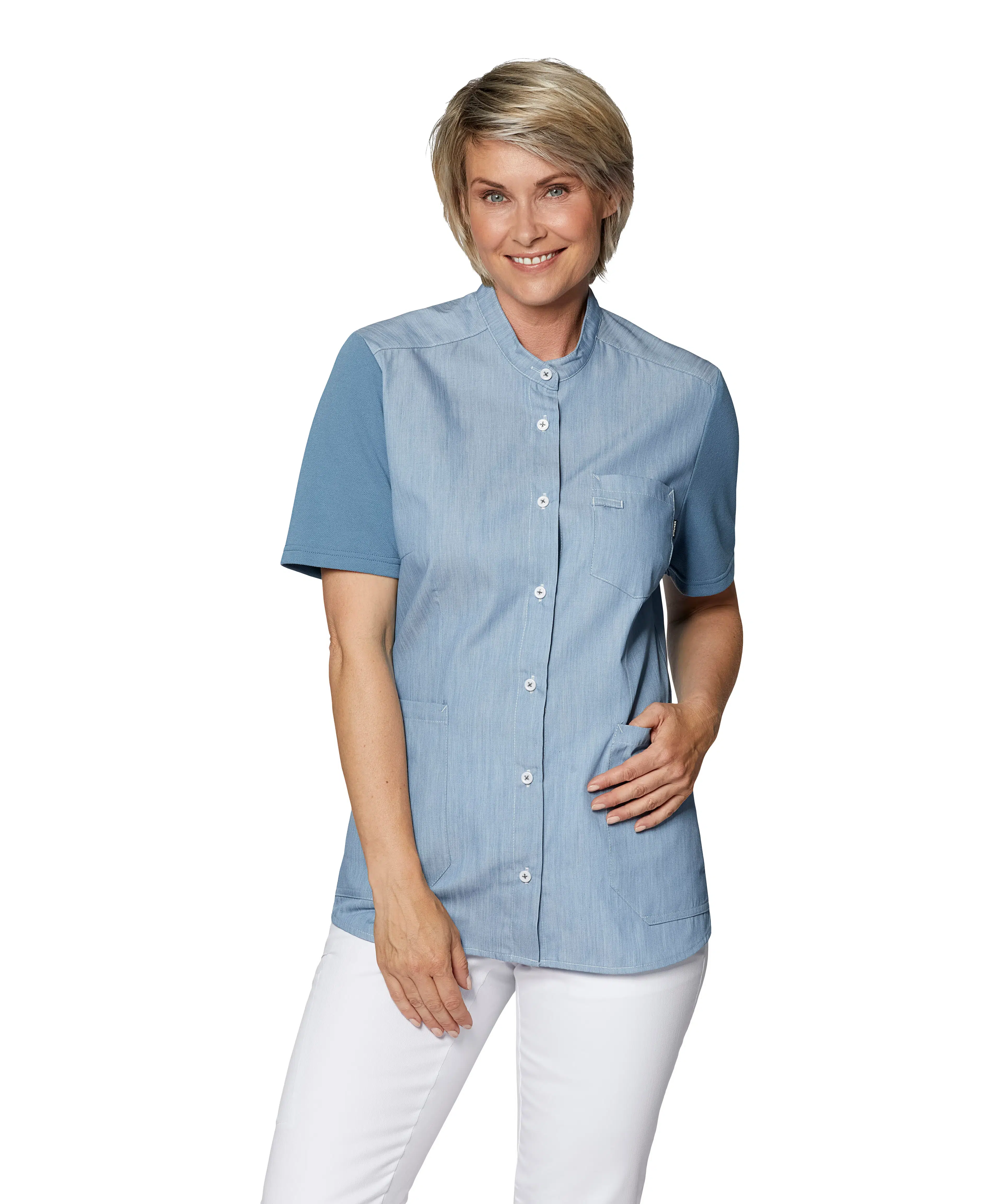 Pique Line is designed for professionals who want the comfort of a T-shirt with the functionality of a tunic. The soft knit fabric allows for full freedom of movement, while woven panels provide durability where it matters. With smart features like spacious pockets and key loops, Pique Line is comfortable to wear, easy to work in, and equipped with details that make your workday easier.