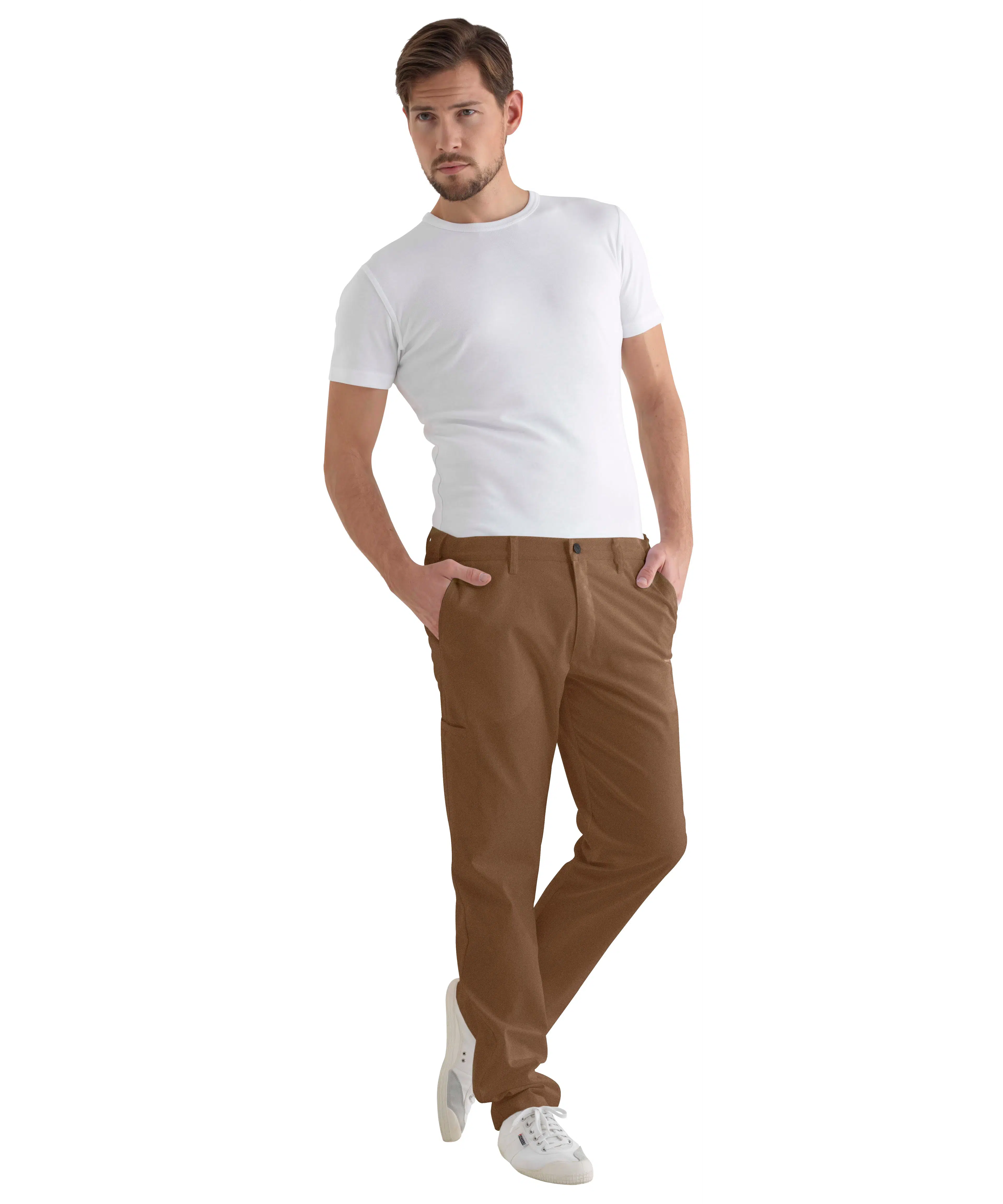 - Fixed waist with belt loops