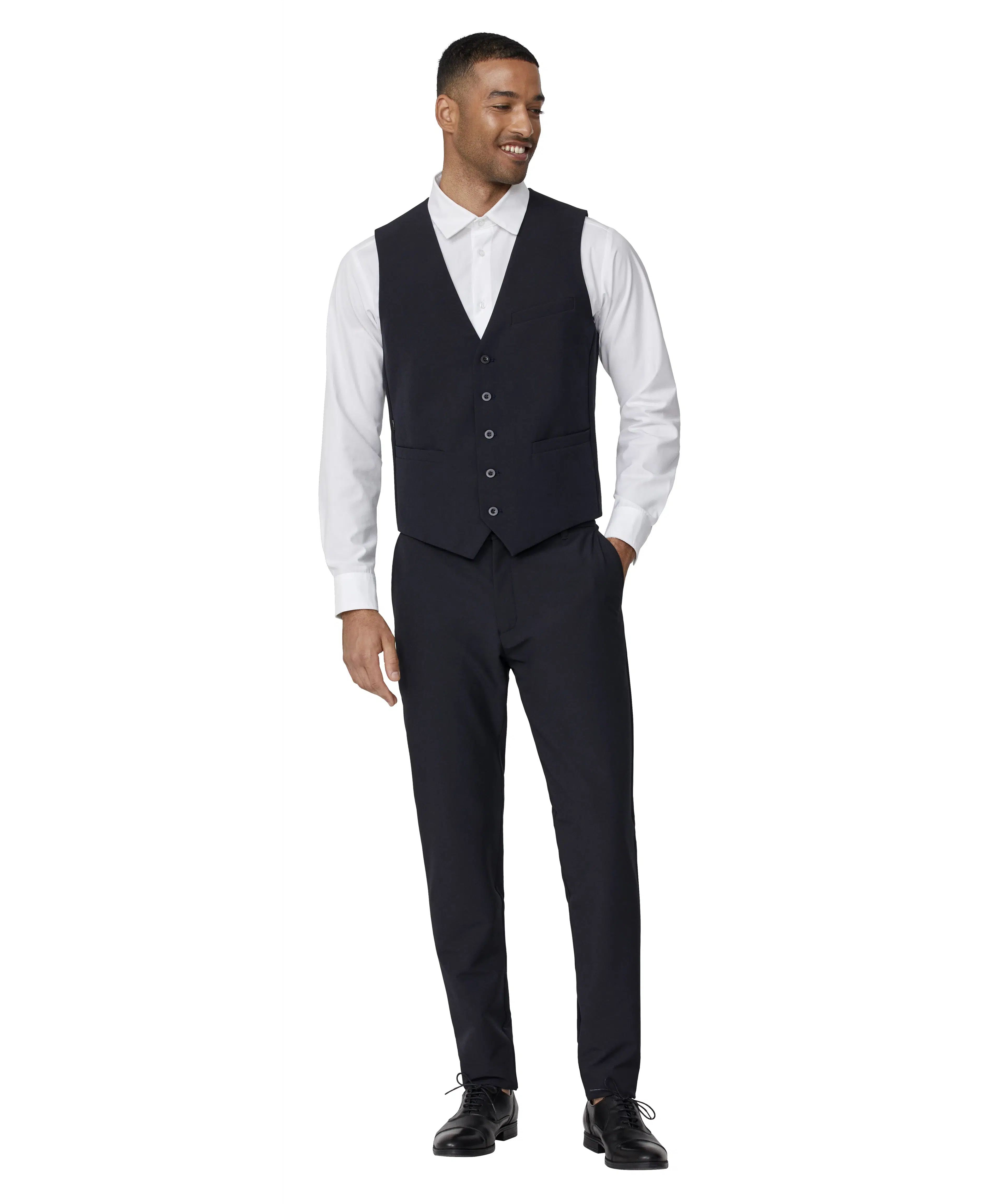 The Performance Suit is made for employees in reception, gastronomy, and other roles where looking sharp is essential and the workwear must withstand industrial laundering. Made with REPREVE® recycled polyester and Creora Power Fit, it offers 4-way stretch for full freedom of movement. Durable, elegant, and designed for demanding workdays.