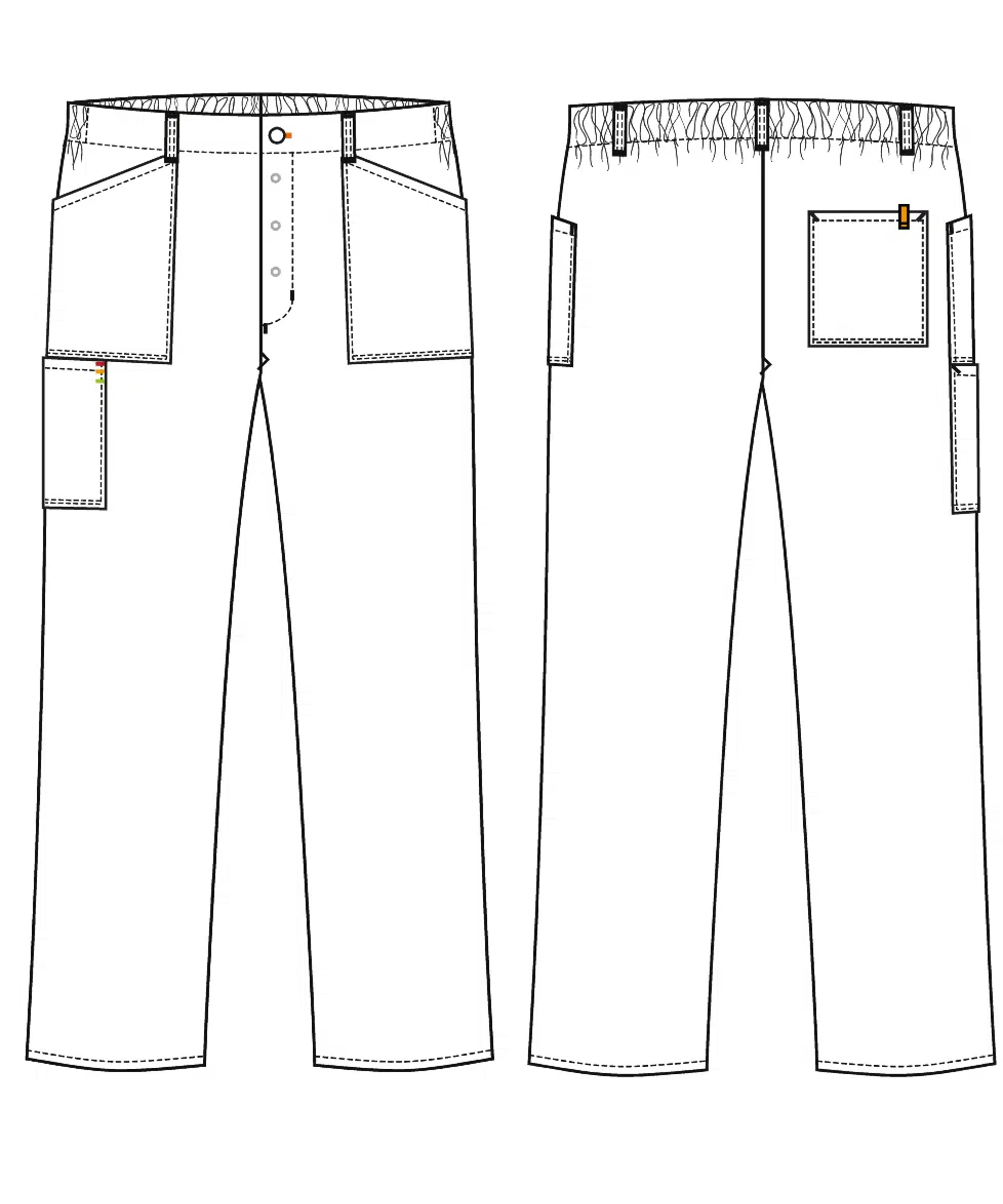 - Belt loops and elastic in the back