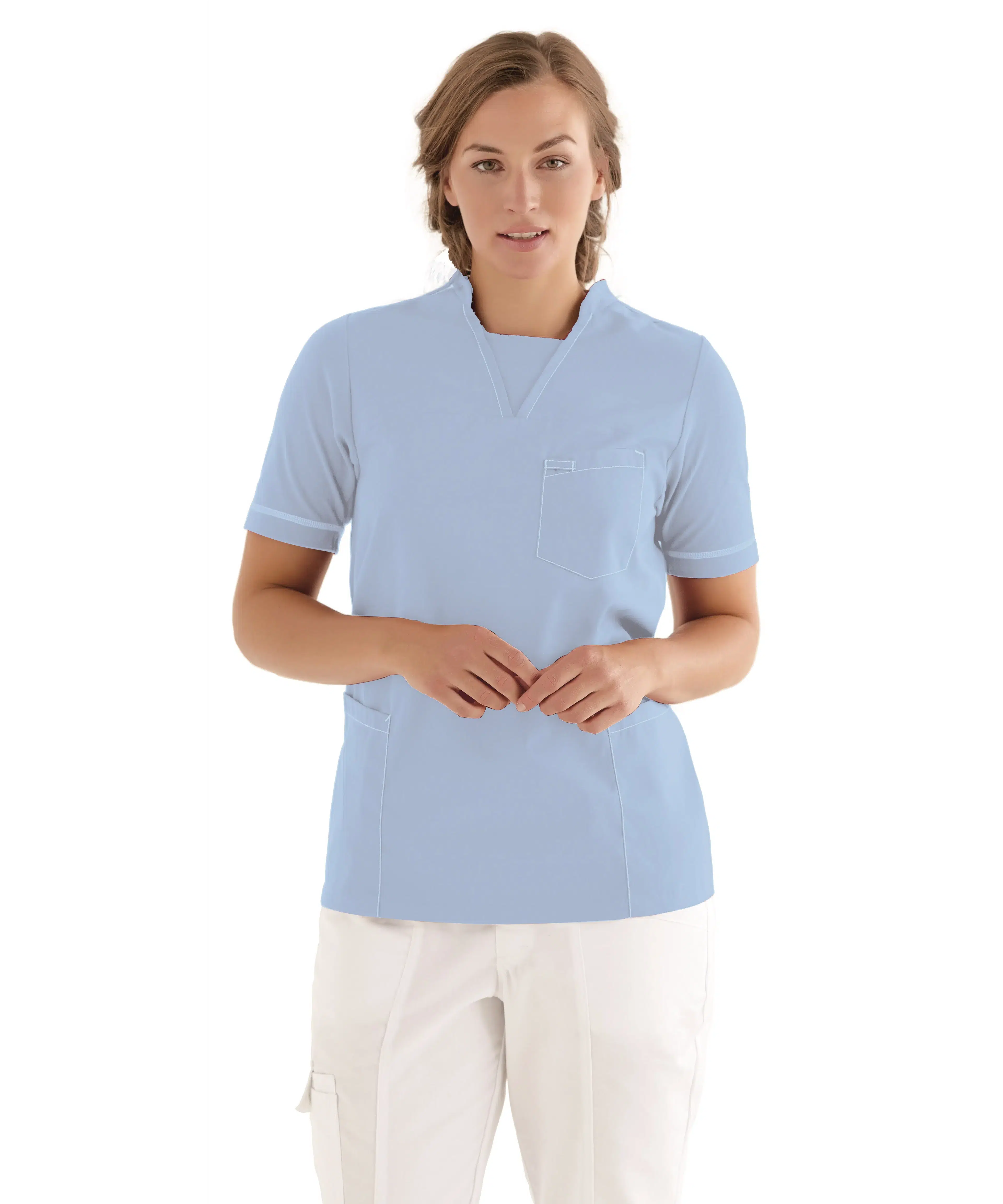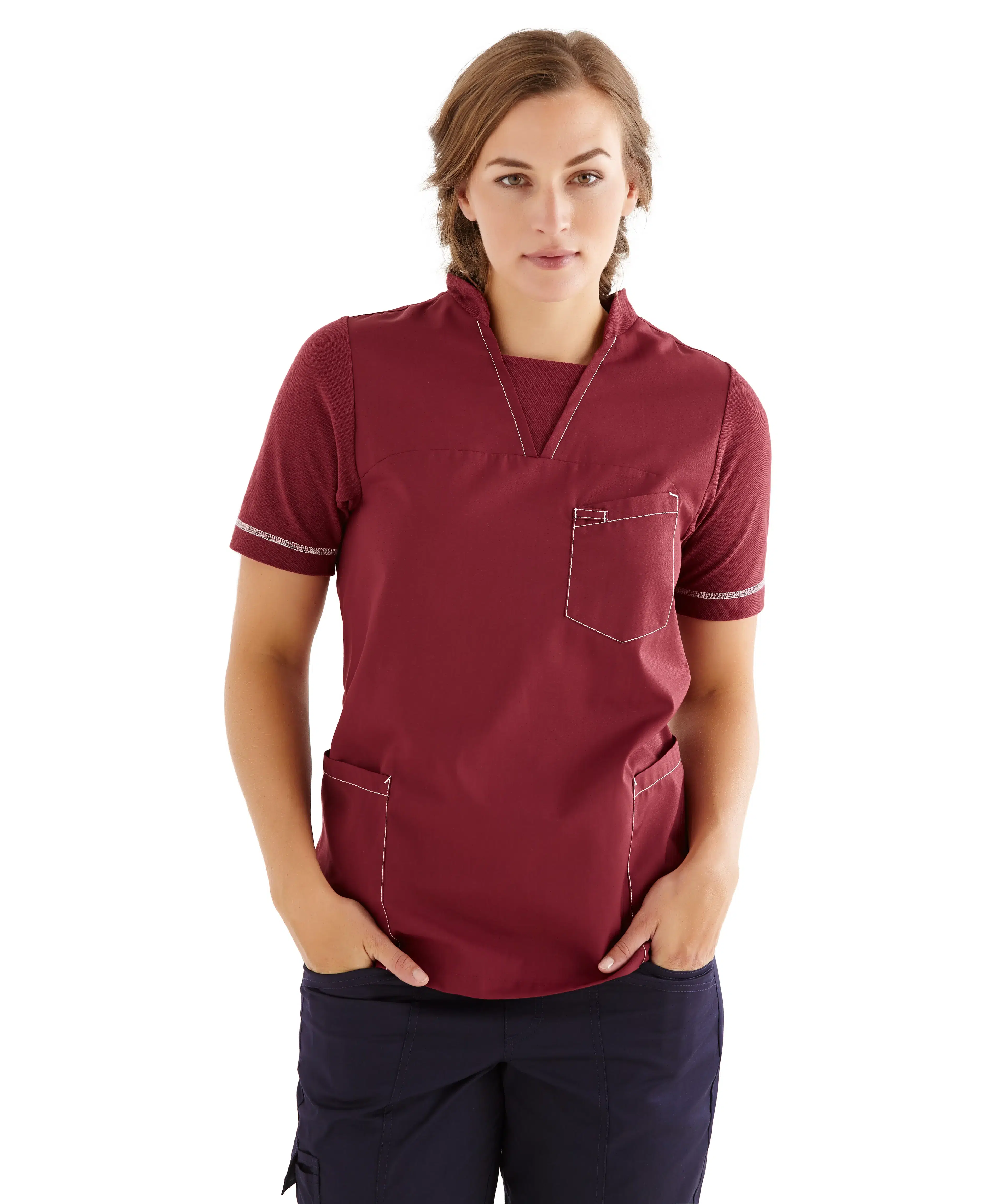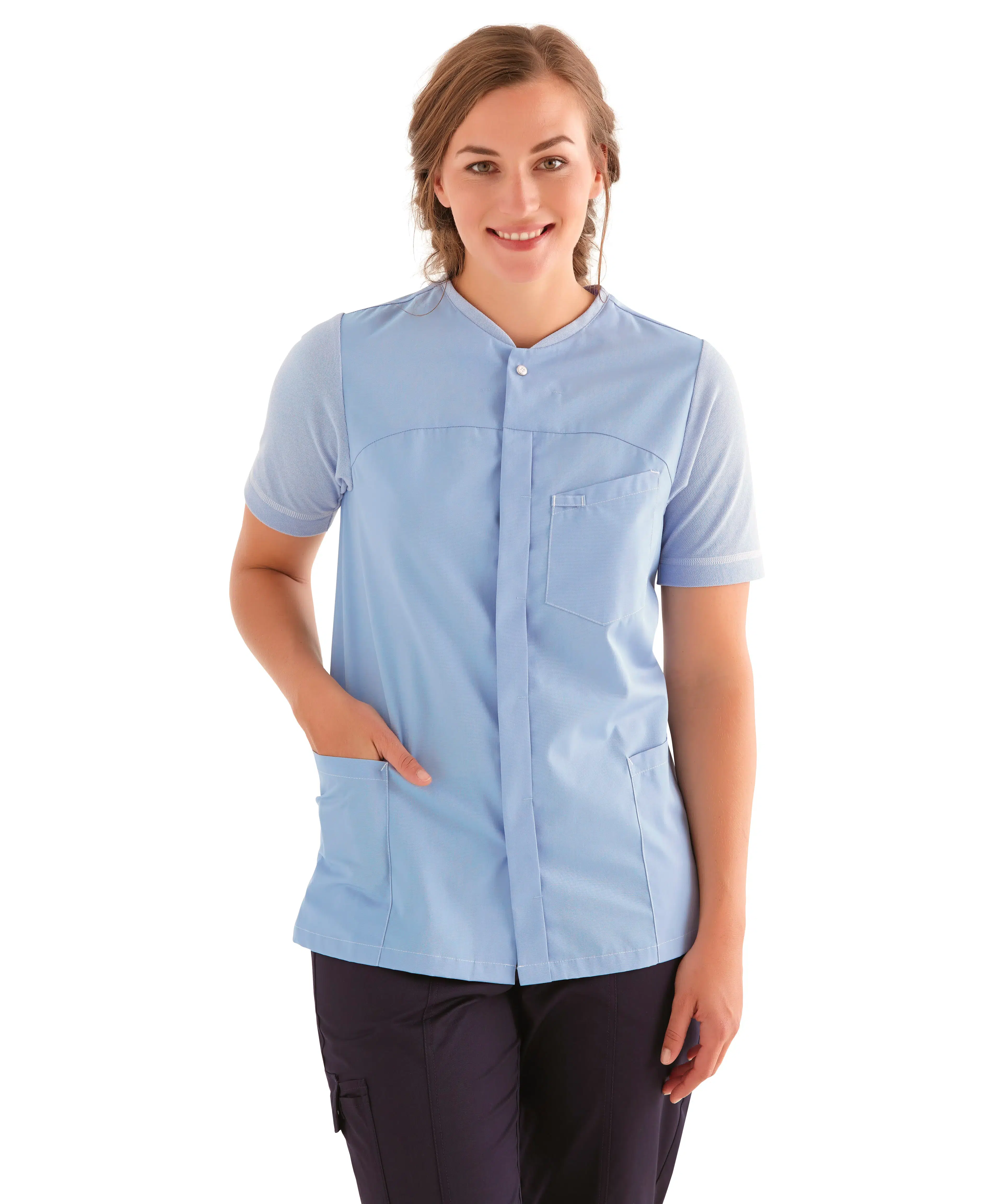 In the ambition to create value, it's also about achieving balance. For the clinic assistant and the veterinarian. And for most other people at work. Our Fusion Line collection is inspired by the classic polo shirt and the functional shirt. Designed to strike a balance between comfort and functionality, featuring a soft and stretchy pique back combined with a stylish shirt front. An optimal fusion for you. At work.
