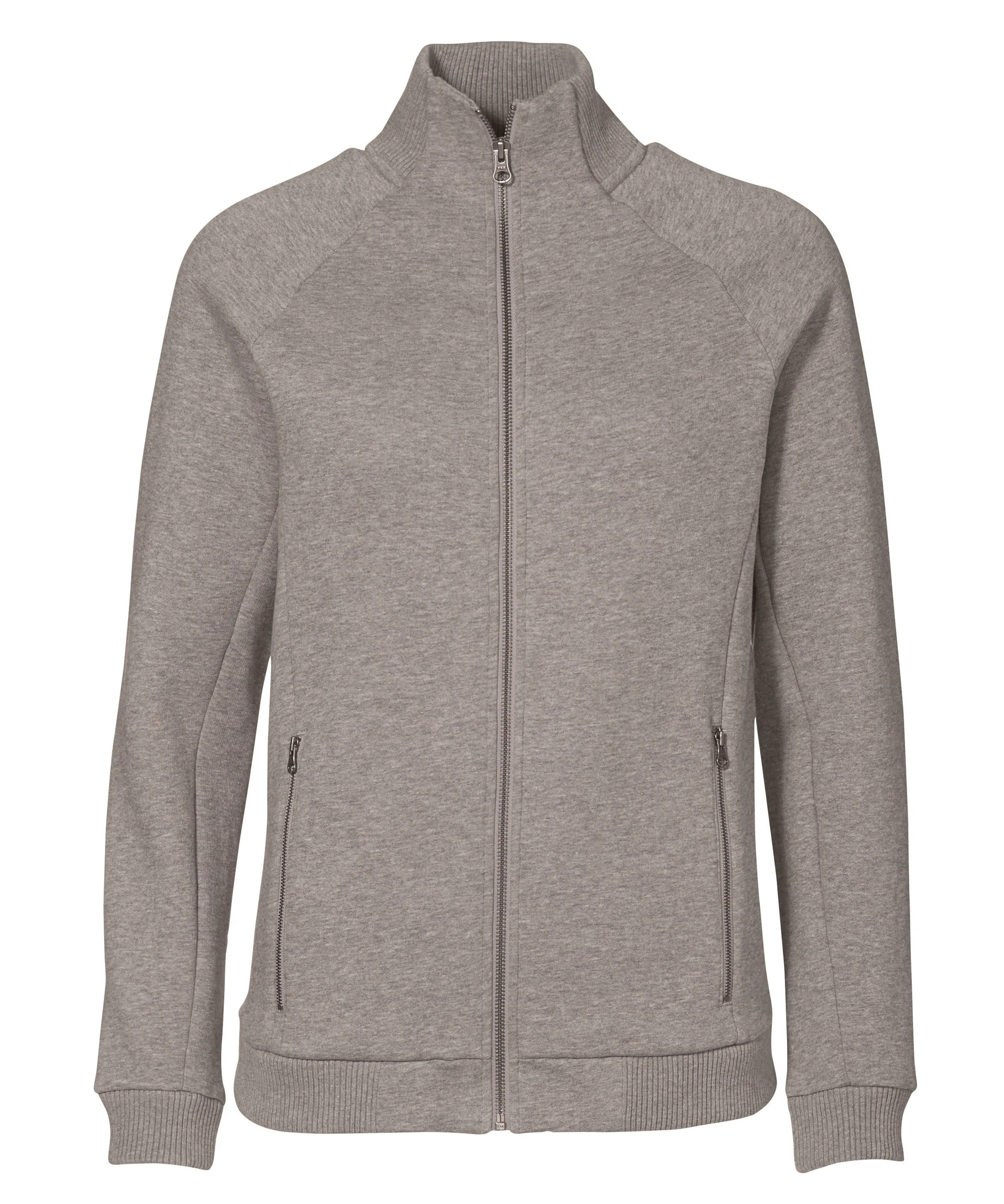 - Ribbing on the collar, sleeves, and waist