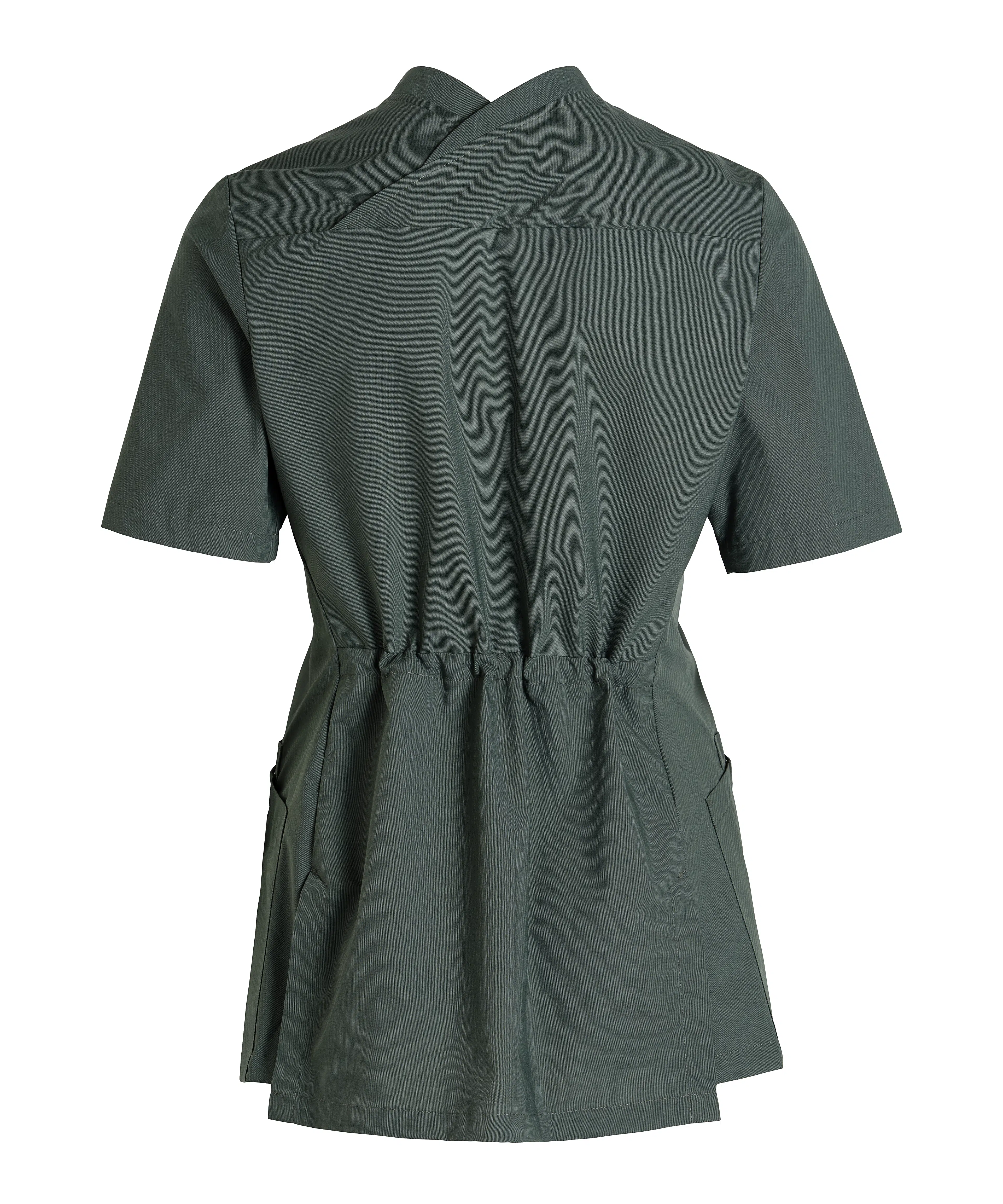 - Hip pockets with hidden press buttons and key straps